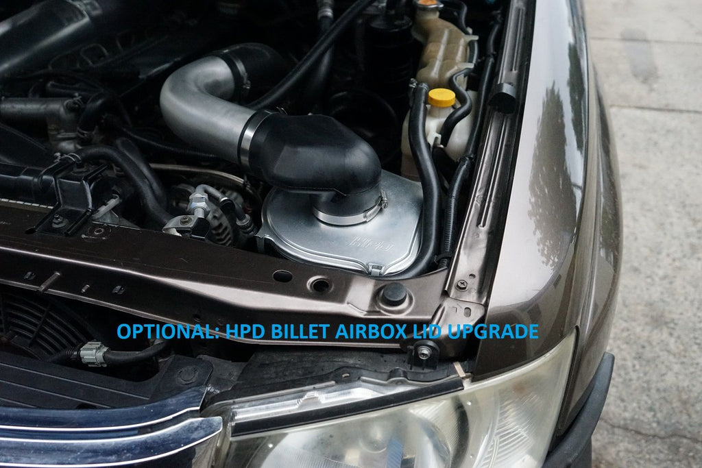 HPD's high flow air intake kit has been designed for those looking for increased flow and performance for there 4.2 litre Nissan Patrol turbo diesel. It also can be used to replace the factory hose that is know to go hard and split allowing dust into the turbo wearing the compressor blades. HPD's hiflow air intake kit comes with with the option to use HPD's billet CNC high flow air intake lid with cobra neck.
