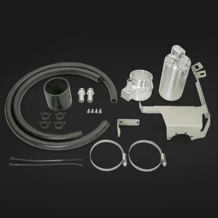 HPD’s oil catch can / oil separators come in universal and complete kits with all required stainless steel laser cut bracketry, correct size hose tail fitting, washable internal stainless mesh filters, cut to size oil resistant hosing, bolts, nuts, washer, spring clamps and installation instructions for each vehicle.